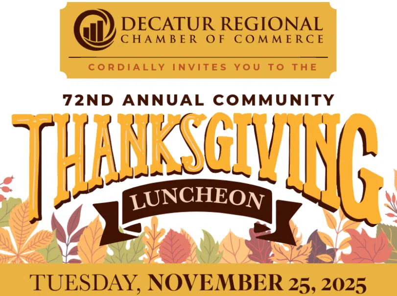 November 16, 2025 – The Decatur Regional Chamber of Commerce will hold the 72nd Annual Community Thanksgiving Luncheon on Tuesday, November 25, 2025, at the Decatur Conference Center & Hotel.